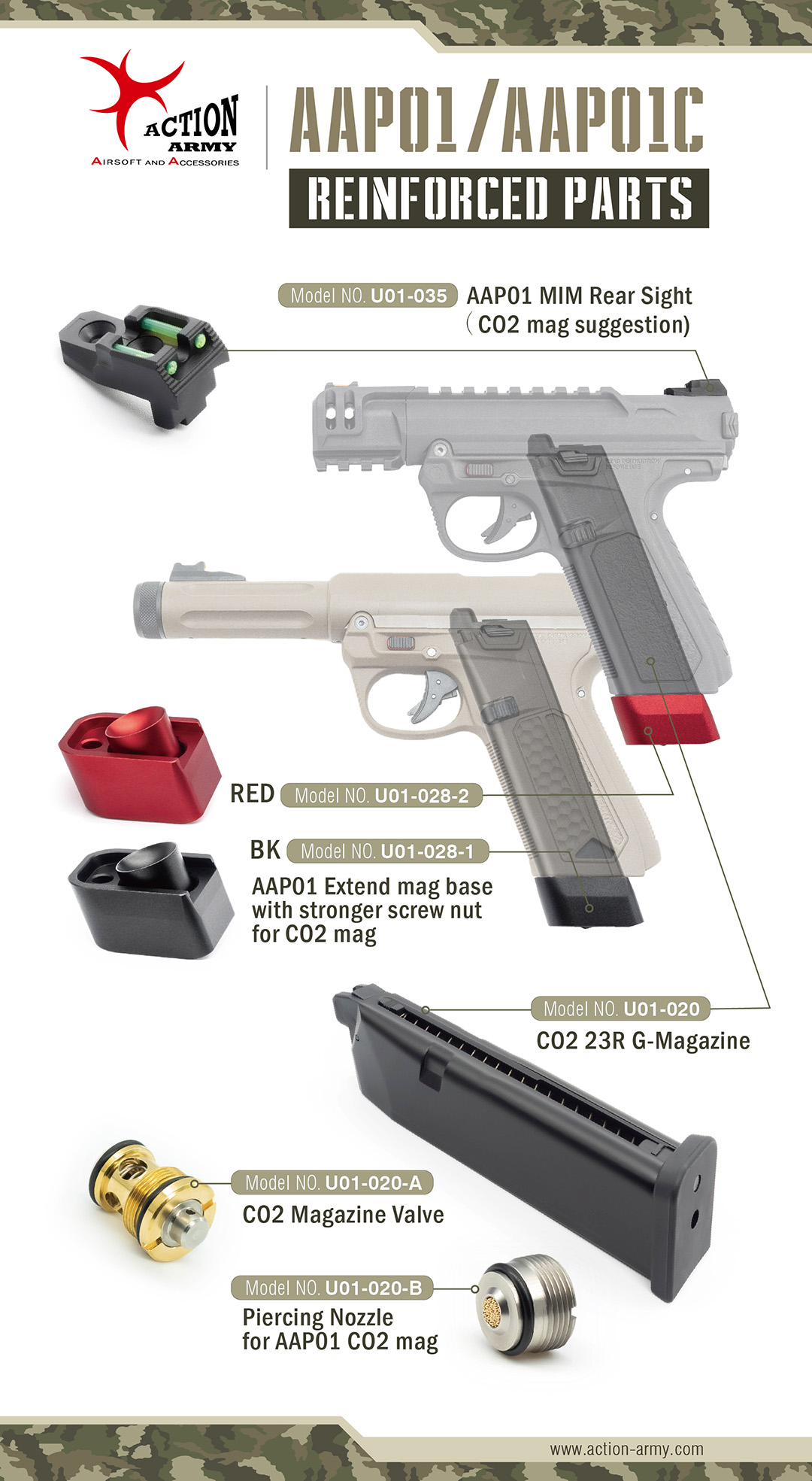 Designed for ACTION ARMY AAP Co2 airsoft magazine use only