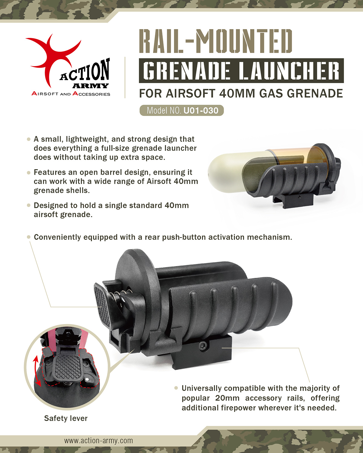 - Action Army Rail-Mounted Airsoft Grenade Launcher