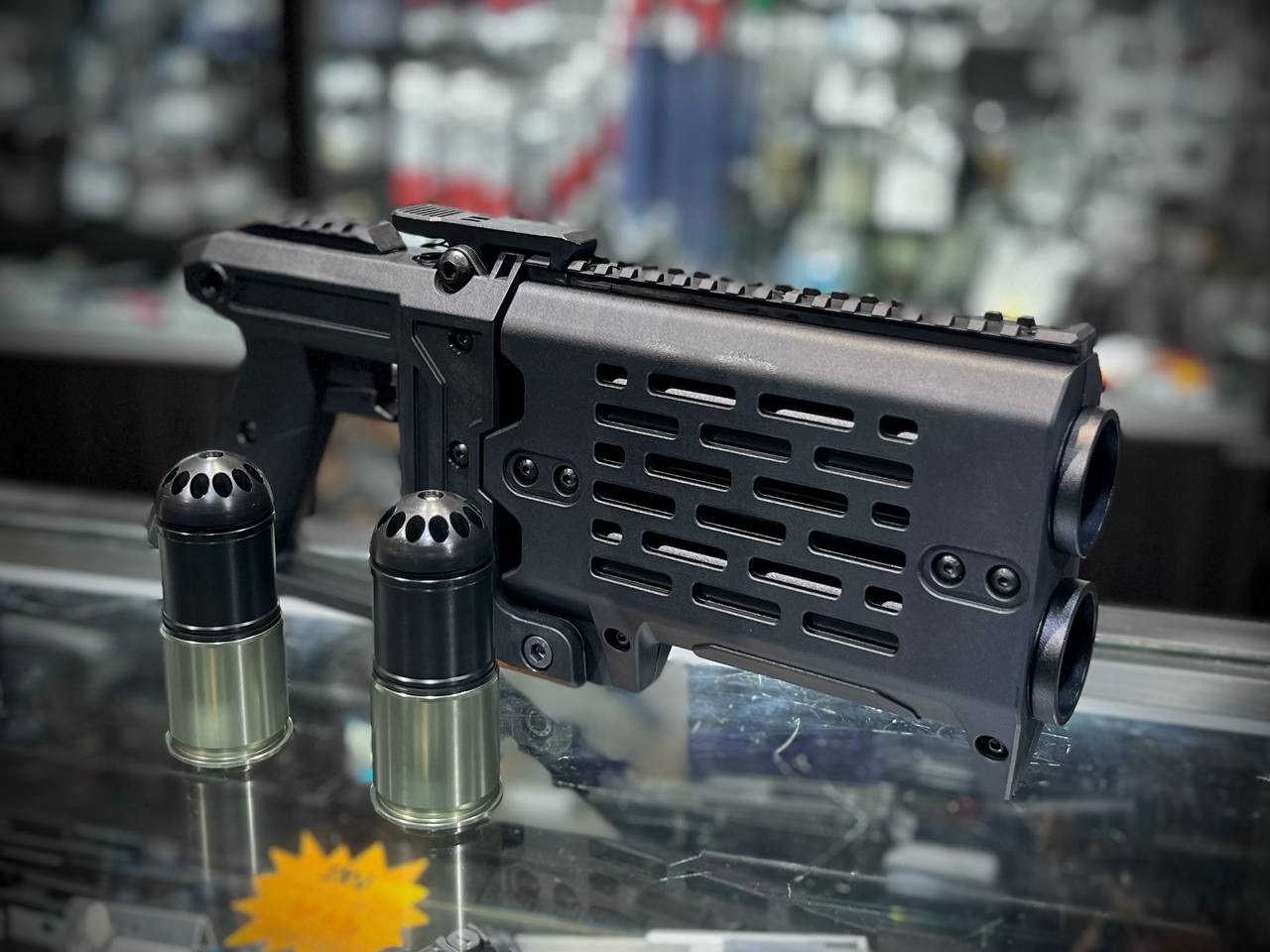 The Arts Alpha AS-40 Double Barrel 40mm Grenade Launcher ( by SAVIA ) is a complete package that includes 2pcs 40mm grenades. It is designed to be compatible with most 40mm grenades available on the market, such as the Acetech Acehive. The launcher is primarily made of CNC aluminum, which ensures durability and reliability. With its double barrel design, this grenade launcher offers enhanced games firepower and versatility.