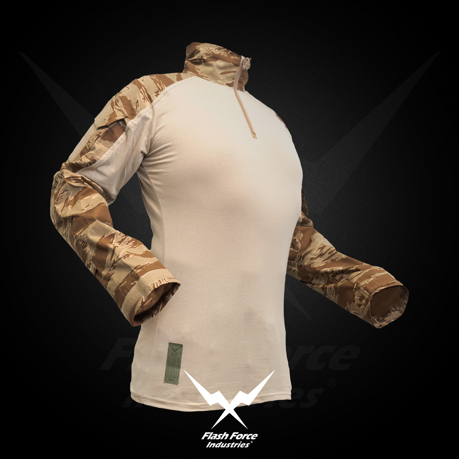 | Major Built Material | Desert Tiger Stripe Camo 50/50 NYCO RIPSTOP Fabric, Shirt Body Fabric ( Cotton ), X Series SPANDEX STRETCH, Velcro, YKK Zipper |