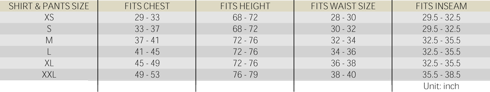 | Major Built Material | MC AD Style Camo 50/50 NYCO RIPSTOP Fabric, Shirt Body Fabric ( Cotton ), X Series SPANDEX STRETCH, Velcro, YKK Zipper |