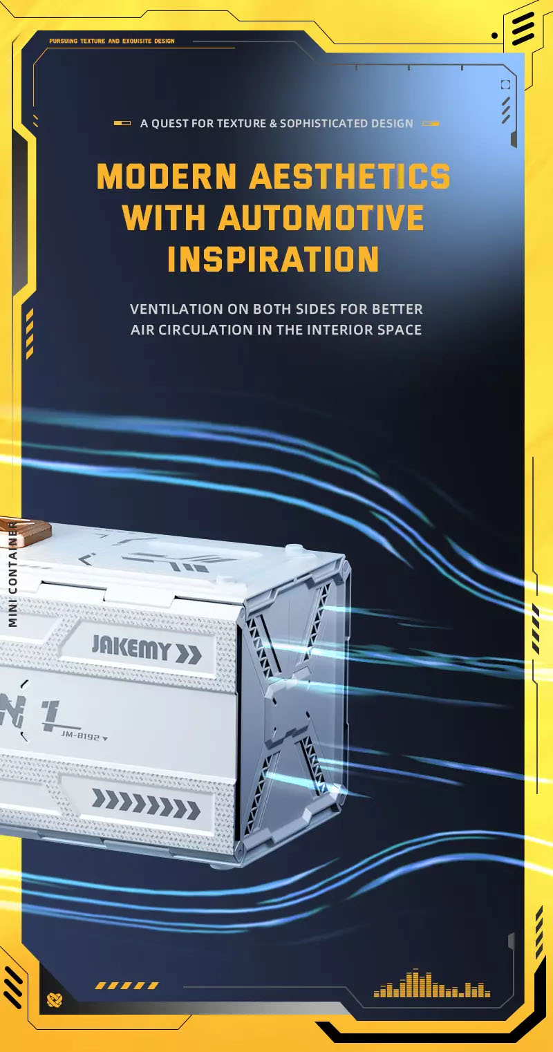 Angular and stylish: Breaking away from the traditional squared-off tool box model, it caters for a modern, sophisticated design that enhances the handheld quality.