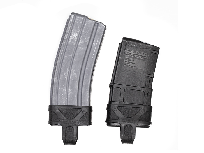 When installed on the base of a 5.56x45 rifle magazine, the original Magpul provides improved speed and controllability during high stress, tactical magazine changes. Durable synthetic rubber loop with recessed rough gripping surface. Quick and easy installation and removal. Patented design based upon the tried-and-true para-cord loops and duct-tape tabs used by special warfare units worldwide.