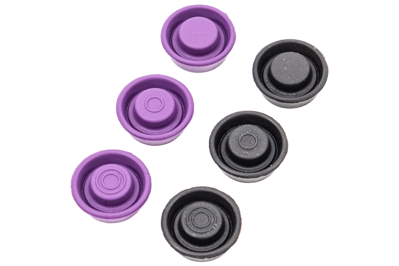 The MEC V piston head set for gas blowback pistols is an improvement over the stock pistol piston head, especially those with metal slides. This rubber piston head is designed to improve airtightness and withstand high-impact pressure. The “v shape” ramp cut at the base of the inner wall of the piston head provides fast responsiveness on air-sealing. The better sealing that the MEC V piston head provides translates to better-felt recoil and noticeably better gas efficiency. The package comes with three piston head sizes: from 13.40 – 13.80mm, to fit into multiple GBB pistol models with approx. 13mm to 14mm nozzles. Each size also comes with two different hardness, the black one (60 degree) for colder weather or for use with regular power gas and the purple one (70 degree) for warmer weather or use with high power gas.