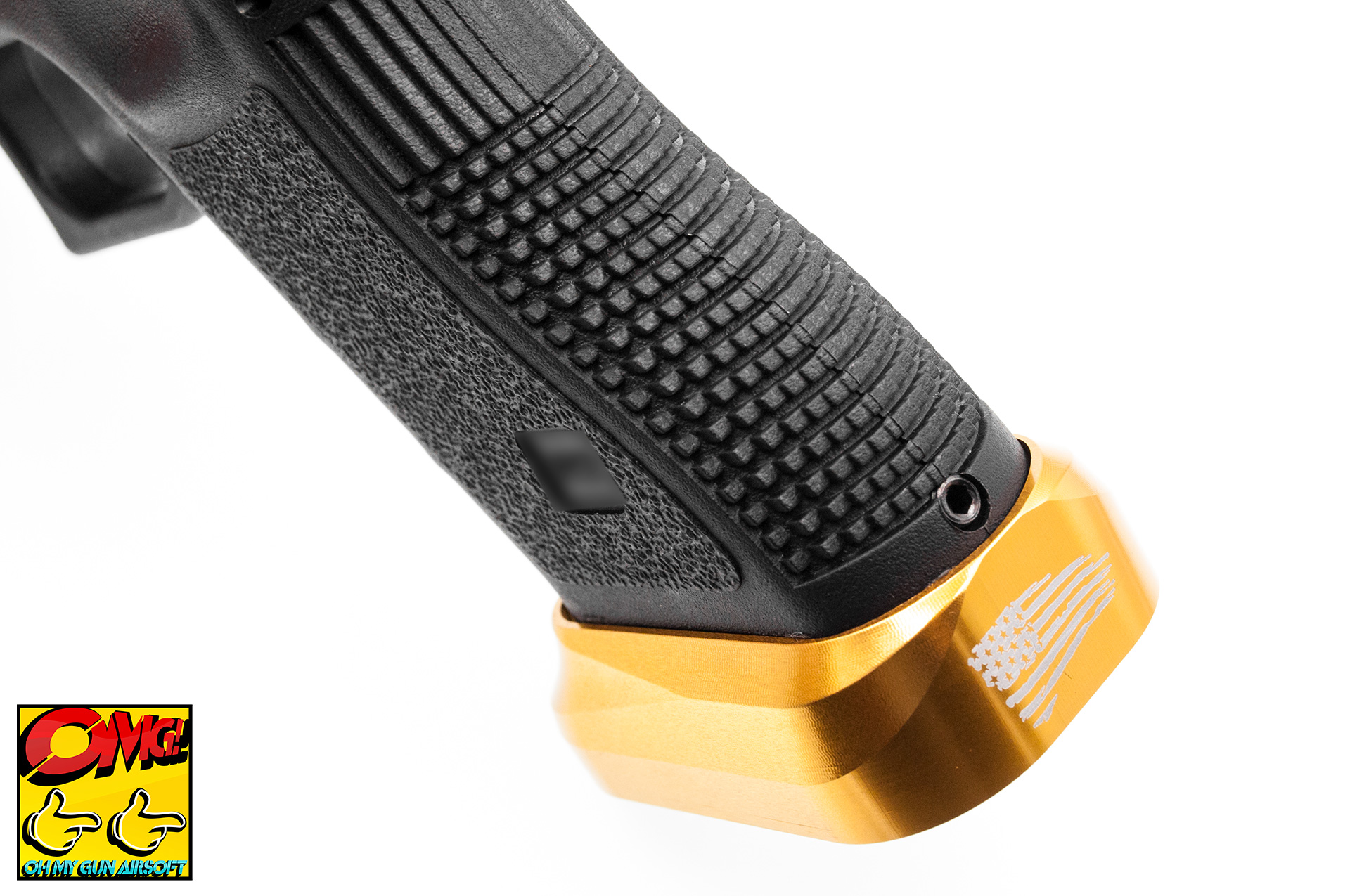 OMG TT Style Aluminum Magwell for Marui G Model ( Gold ) ( Flying America Flag ) ( Mag Well )