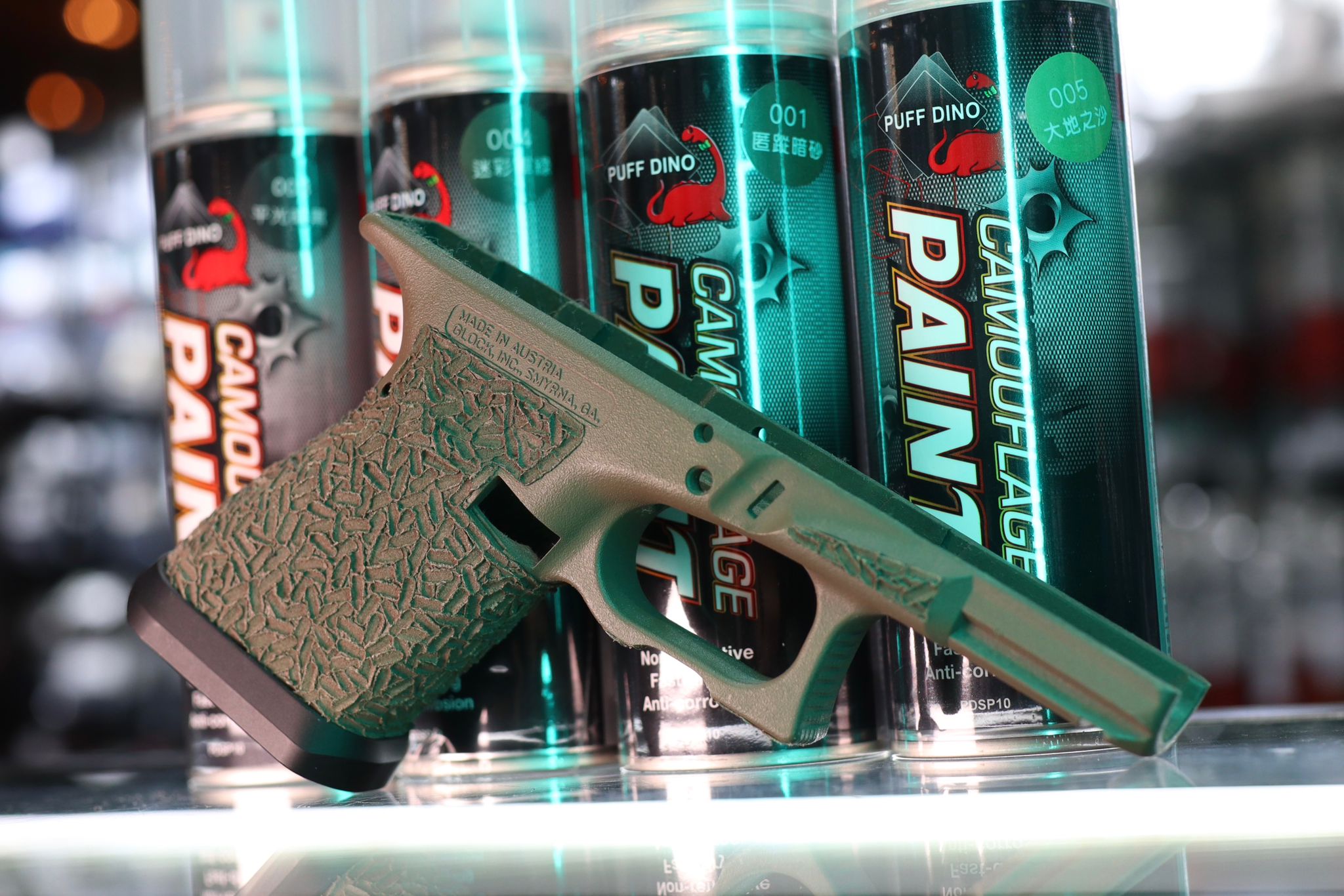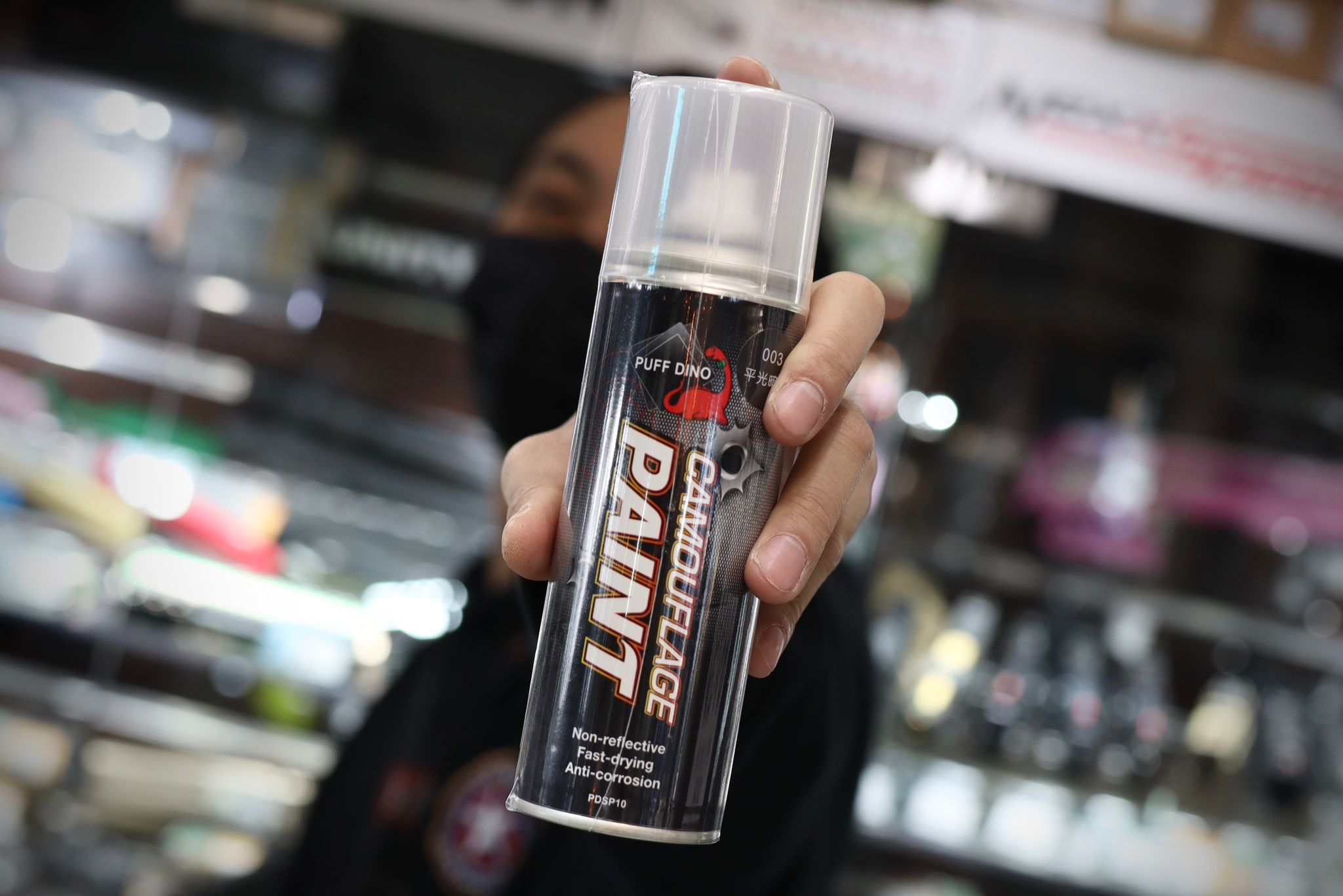 Puff Dino Camo spray paint allows user easily coloring their guns and model. With quick dry paint, it will shorten process time.