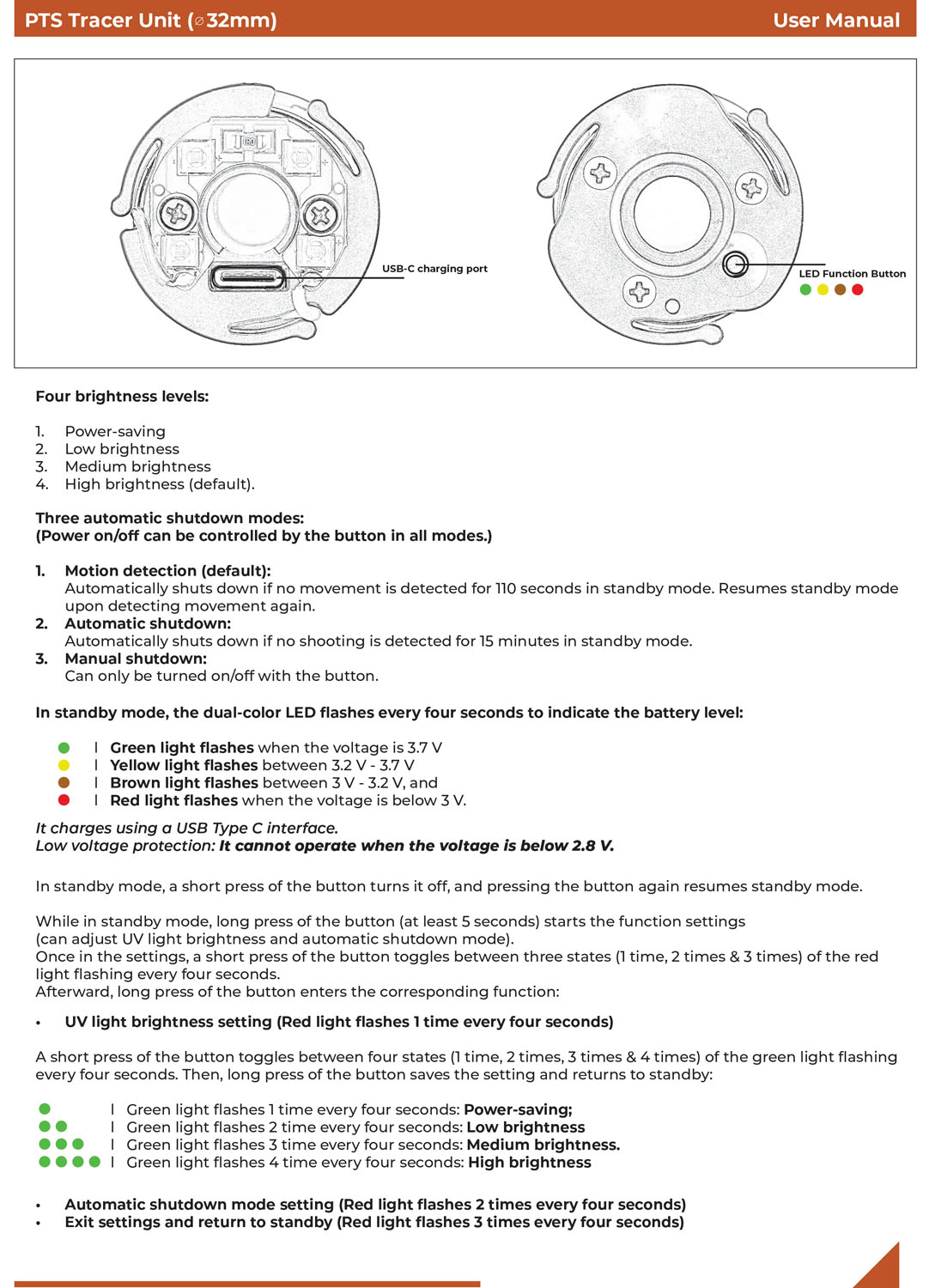 Operating the tracer unit is easy—simply press the same button for both turning it on and off. A flashing green light indicates that it is on, while no light signifies that it is off. This design allows users to focus on aiming without worrying about the tracer unit turning off on its own, as is the case with units featuring an auto power off function. The unit itself can be easily dropped into most airsoft suppressors or barrel extensions with an inner diameter greater than 32mm and a length greater than 48.6mm.