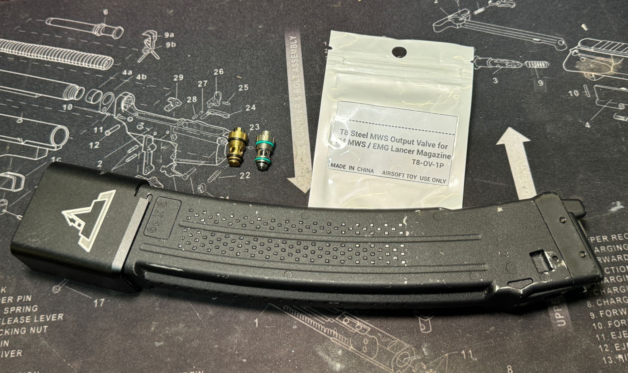 - Compatible With EMG Lancer System Licensed L5-AWM MWS Gas Magazine