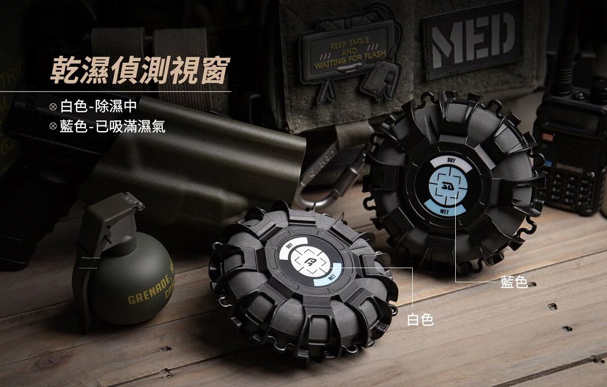 - PROTECTIVE & TACTICAL DESIGN: The military design of this compact dehumidifier can perfectly fit in with the case of your guns and airsoft. The protective frame can also avoid any collision.
