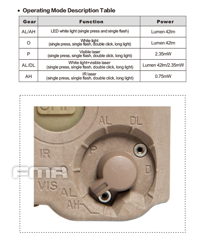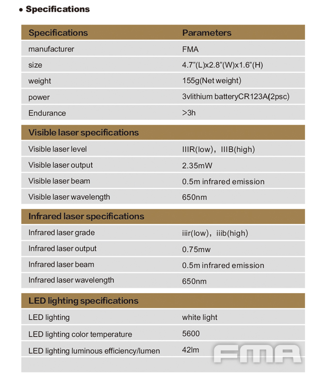 FMA PEQ LA5-A LED White Light + RED Laser with IR Lenses ( Black / DE )