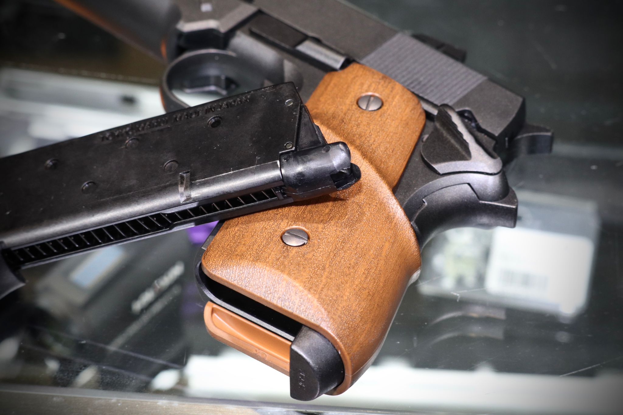Based on the setting materials and depictions in the work, details such as the most distinctive feature, the strike face integrated compensator, uniquely shaped grip, original shaped front / rear sights, unmarked slide, special magazine, etc are recreated. This is a piece that has been made with attention to details !