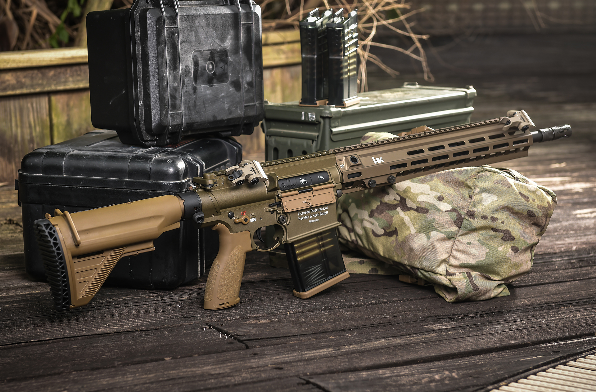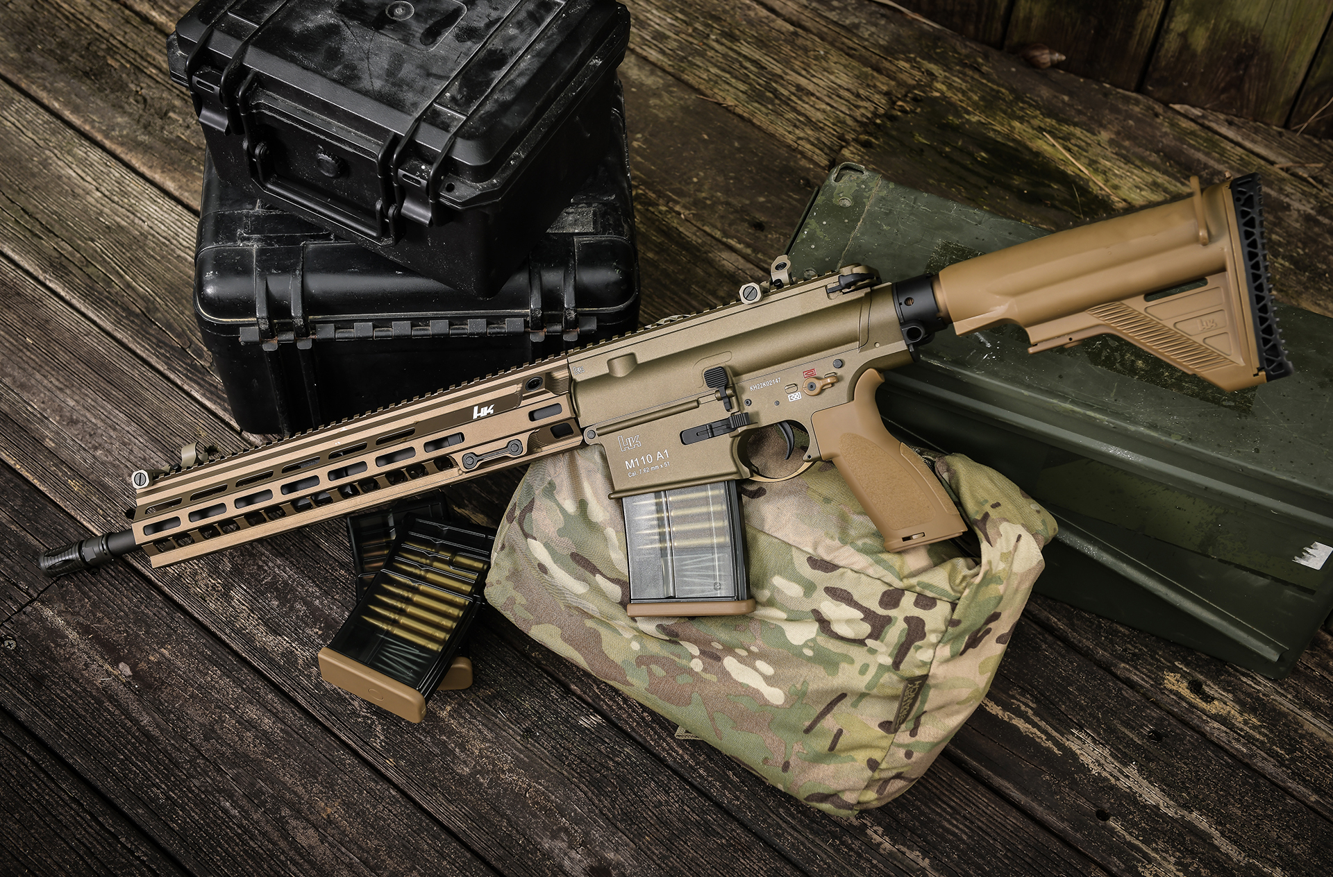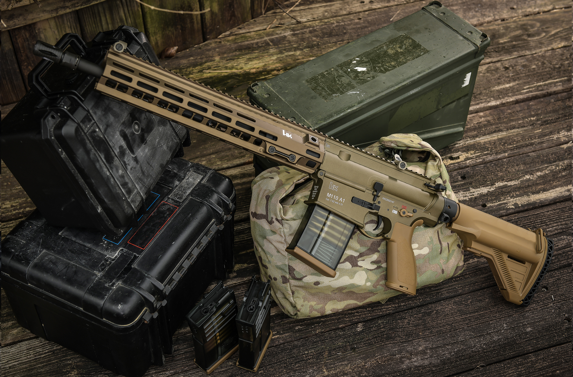 The M110A1 is an American military semi-automatic precision rifle that is chambered for the 7.62×51mm NATO round. It is manufactured by H&K and developed from HK417; the HK417 is a gas piston variant of the AR-10 platform, with the short-stroke gas piston derived from the H&K G36. Compared to the G28, the M110A1 uses an aluminum upper receiver instead of steel to meet weight requirements, and similar to the Germany Bundeswehr G28 configuration.