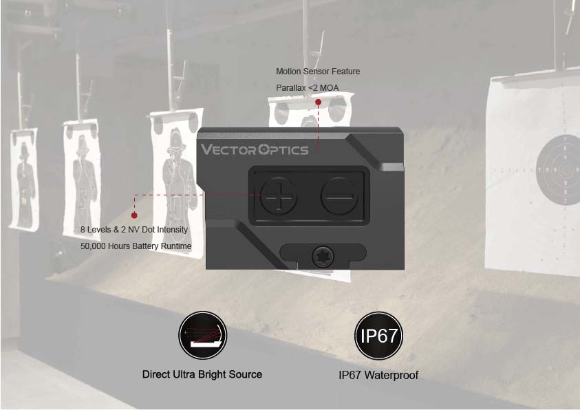 ->50,000 Hours Battery Runtime for Lowest Visible Reticle, IP67 Water Proof, VOD Footprint